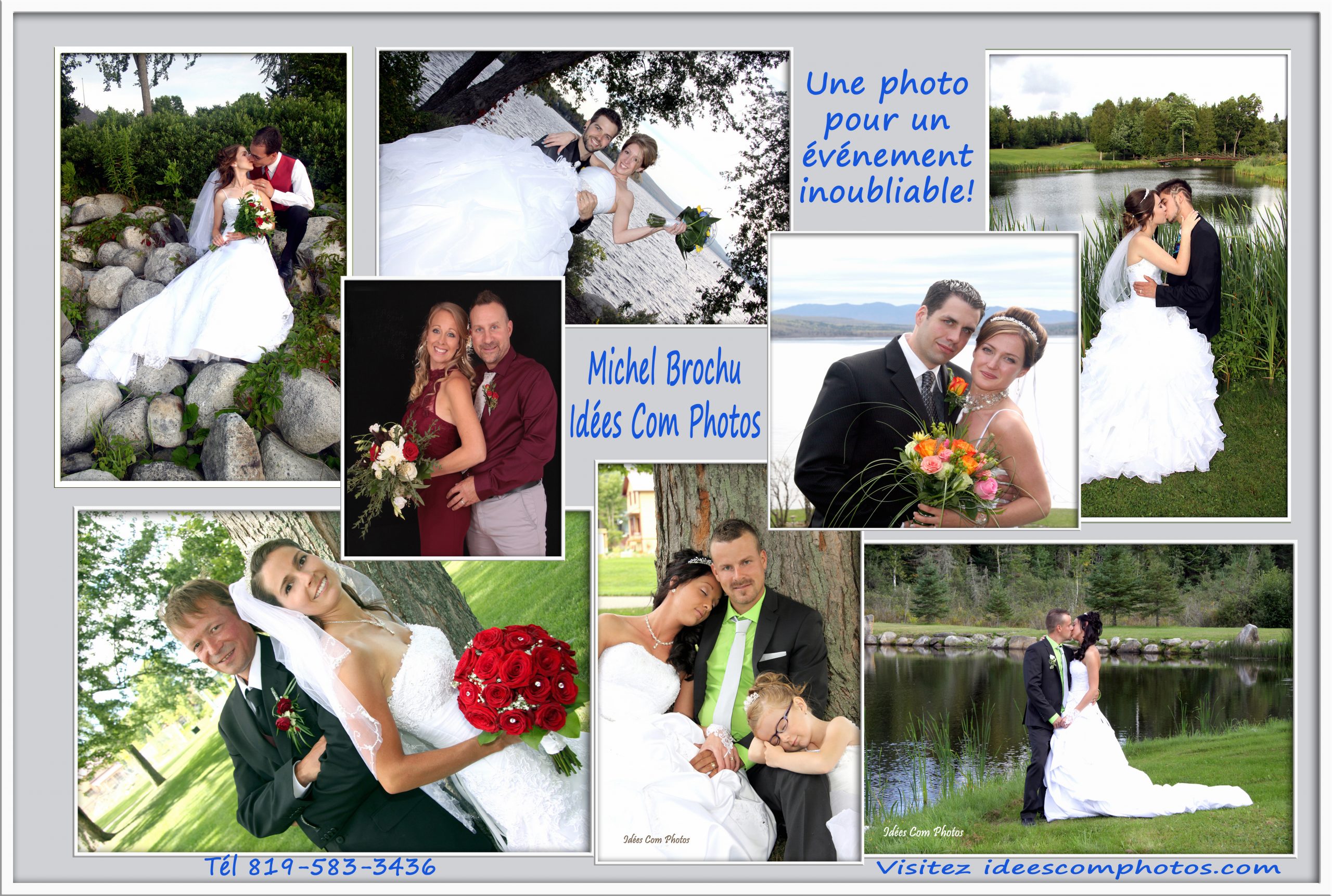 819 583.3436 www.ideescomphotos.com Espace photos À propos d’Idées Com Photos Espace photos – Michel Brochu, photographe Idées Com Photos vous présente ses différentes créations photographiques : Photos de mariage Portfolio féminin Photos extérieures Et plus encore